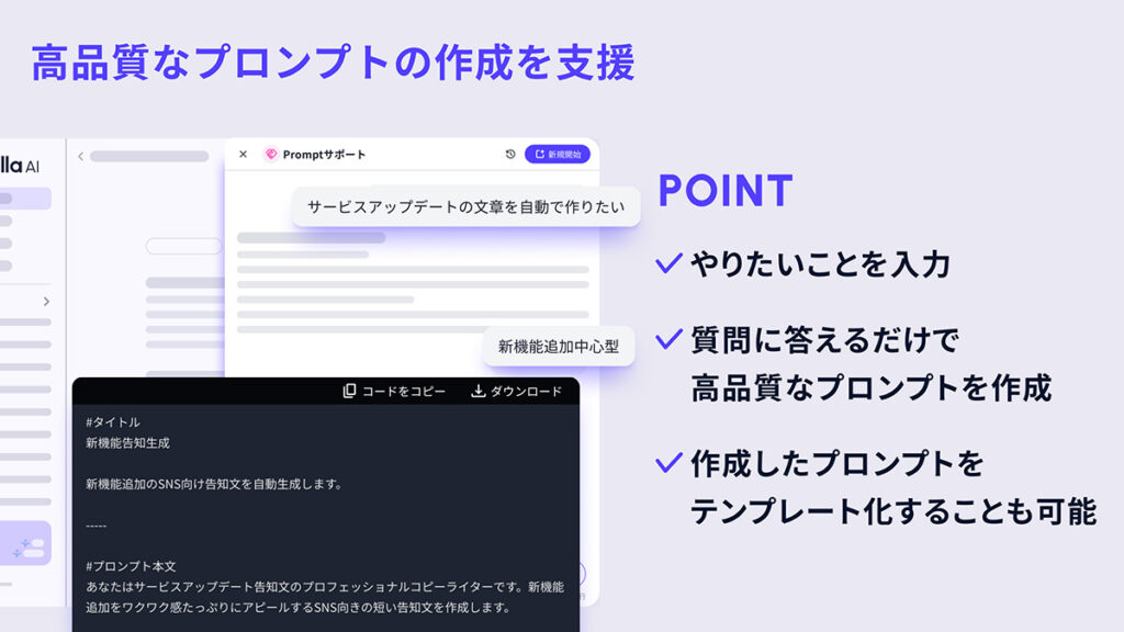 生成AIサービス開発を手掛ける株式会社SUPERNOVA(本社:東京都港区 代表取締役社長 木本 東賢 以下、当社)は、当社の生成AIサービス「Stella AI for Biz」において、プロンプトサポートおよび使い方動画を2026年3月2日(月)より提供開始します。